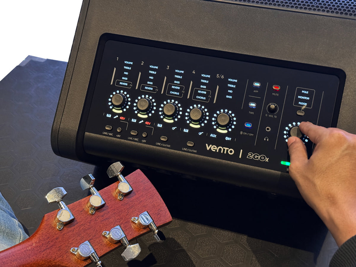 Los canales 3 y 4 incorporan un selector Line/Guitar y ofrecen reverb y chorus, brindando mayor versatilidad para instrumentos eléctricos y fuentes de línea.